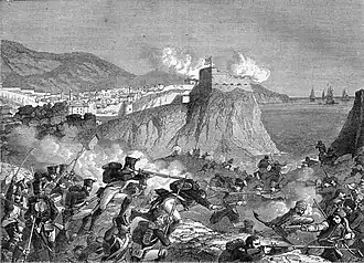 ![]() Siege of Ragusa (illustration by H. F. Philippoteaux, c. 1870) | |||||||