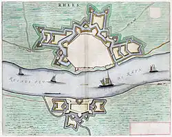 The siege of Rees of 1599, also known as the relief of Rees (Socorro de Rees in Spanish), was an unsuccessful attempt by Protestant-German forces led by Count Simon VI of Lippe, and Anglo-Dutch forces sent by Prince Maurice of Nassau (Dutch: Maurits van Oranje), commanded by Philip of Hohenlohe-Neuenstein and the Count Ernst of Solms, to capture the strategic stronghold of Rees, Lower Rhine, Duchy of Cleves (present-day Germany) from the Spanish forces of Don Francisco de Mendoza, Admiral of Aragon, second-in-command of the Army of Flanders, and Governor Don Ramiro de Guzmán, between 10–12 September 1599, during the Eighty Years' War and the Anglo-Spanish War (1585–1604).[1][2] This Spanish victory was part of the campaign of Francisco de Mendoza and Cardinal Andrew of Austria of 1598-1599, also called the Spanish Winter of 1598-99.[2][4]