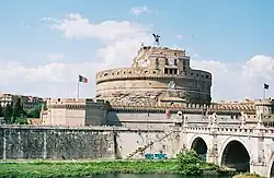 Vitiges then left a large force to keep the defenders occupied, and attacked the walls to the southeast, in the area of the Praenestine Gate, known as the Vivarium, where the fortifications were lower. A simultaneous attack was carried out in the western side, at the Mausoleum of Hadrian and the Cornelian Gate. There the fighting was particularly fierce. Eventually, after a hard fight, the Goths were driven off,[10] but the situation at the Vivarium was grave. The defenders, under Bessas and Peranius, were being hard pressed, and sent to Belisarius for help. Belisarius came, accompanied by a few of his bucellarii. As soon as the Goths breached the wall, he ordered a few soldiers to attack them before they could form up, but with the majority of his troops, he sallied forth from the gate. Taking the Goths by surprise, his men pushed them back and burned their siege engines. At the same time, whether by chance or design, the Romans at the Salarian Gate also attempted a sortie, and likewise succeeded in destroying many of the siege engines. The first attempt of the Goths to storm the city had failed, and their army withdrew to their camps.[11]