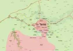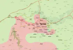 The siege of Taiz[21][22] is an ongoing, protracted military confrontation between opposing Yemeni forces in the city of Taiz for control of the city and surrounding area. The battle began one month after the start of the Yemeni Civil War.