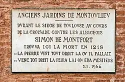 ![]() Depiction of Simon de Montfort's death at Toulouse | |||||||