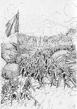 The siege of Tuyên Quang was an important confrontation between the French and the Chinese armies in Tonkin (northern Vietnam) during the Sino-French War (August 1884 – April 1885). A French garrison of 619 men, including two companies of the French Foreign Legion, successfully defended the French post of Tuyên Quang against vastly outnumbering Chinese forces in a four-month siege from 24 November 1884 to 3 March 1885. 'Tuyên Quang 1885' remains one of the Legion's proudest battle honours.[2]