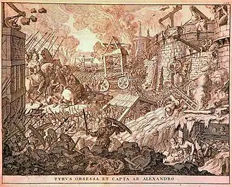 From 340 B.C. onwards, Philip II of Macedon was able to erect siege towers of 80 cubits (37.04 m).[10] As for Alexander the Great, he used against Halicarnassus and Tyre towers 100 cubits high.