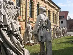 The marble monuments and the neobaroque ensemble were ridiculed even by its contemporaries. Berlin folklore dubbed the Kaiser Denkmalwilly (Monument Billy) for his excessive historicism.[1] Moves to have the statues demolished were thwarted after the end of the monarchy in 1919.