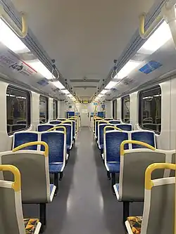 In early 2024, the Siemens Nexas fleet began to receive a refurbished interior, with the old blue Melbourne train system station names seat fabric replaced with the current PTV blue design. It also includes an improved emergency intercom system, a wheelchair assistance button, and additional grab poles. In a separate project, they had new dynamic information displays added, similar to the Stage 3 Comeng, showing the next few stops and the line colour.[24]