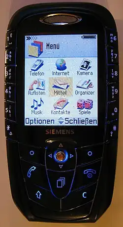 The Siemens SX1 is a GSM mobile phone running version 1.2 of the Series 60 platform for the Symbian OS. It was the first such smartphone from Siemens following its licensing agreement with Nokia for the use and development of Series 60. Though unveiled in February 2003, it was not launched until December 2003.