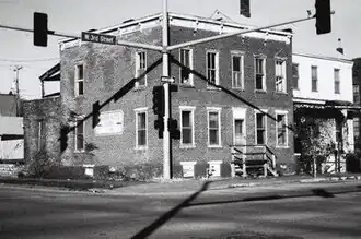 The Siemer House was a two-story brick building on a stone foundation. This late Victorian structure featured details that evoked the Italianate style: a cube-like mass, a bracketed metal cornice, the tall, narrow profile of the fenestration, and the centralized entrance.[2] The windows were symmetrically placed on the façade with five on the second floor and two flanking the entrance on both sides. The windows were surrounded by small wooden headers and sills. It was originally built as a single-story structure, with the date of the second story addition by the original builder and owner unknown.[4] Another addition onto the rear of the house added a kitchen on the first floor and a porch on the second floor. There are several other examples of this type of house in the city, but they are all detached dwellings in residential areas while the Siemer House was in a more urban setting.[3]