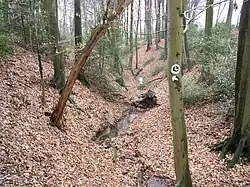 In East Westphalian Ravensberger Land and in Lipperland such landforms are known as Sieks. But after land amelioration for agriculture, they usually have a trough-shape today. It is possible that there is an etymological relationship between the Middle Low German term for a similar fluvial landform, sike , and the word Siepen.[7]