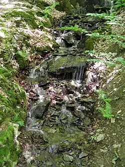 The headstreams in the valley do not carry water all year round; but have nonetheless carved out the V-shaped valley. In the post-glacial period the quantities of water flowing out of the Central Uplands were greater, so that the streams were able to cut down more strongly into the terrain than they are today.