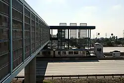 Sierra Madre Villa station is an at-grade light rail station on the A Line of the Los Angeles Metro Rail system. It is located in the median of Interstate 210 (Foothill Freeway), at Sierra Madre Villa Avenue, in Pasadena, California. The light rail station opened on July 26, 2003, as the northern terminus of the original Gold Line, then known as the "Pasadena Metro Blue Line" project. The station, under naming schemes, is named for Sierra Madre Villa Avenue rather than the nearby city of Sierra Madre, although the major thoroughfare leads to Sierra Madre.