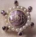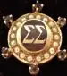 - Member pin- "Pearl bordered circular shield of purple enamel, displaying sorority letters in gold, and jeweled additionally with six amethysts set at prescribed points outside a circlet of pearls"—This description is accurate for both Sigma Sigma Omicron and Sigma Phi Beta.