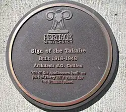 - ^ "Sign of the Takahe". New Zealand Heritage List/Rārangi Kōrero. Heritage New Zealand. Retrieved 9 March 2010.
