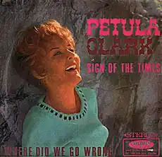 "Sign of the Times", also known as "A Sign of the Times", is a song performed by Petula Clark, featured on her album My Love and released as a single in March 1966. It was the follow-up to her #1 US hit "My Love," the title track from the aforementioned album, and it continued her association with writer/producer Tony Hatch and songwriter Jackie Trent. However, "Sign of the Times" had a more percussive sound than had been evident in Clark's previous singles, or that become evident in her later ones.[1][2][3][4]