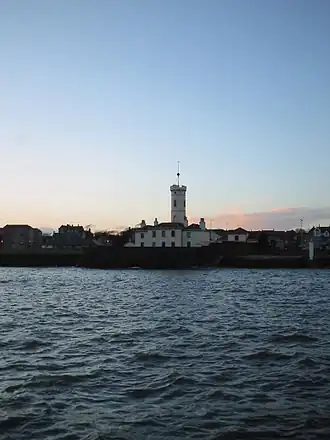 Originally built in 1813 as a base of operations for the famous Bell Rock Lighthouse, the Signal Tower housed the families of the keepers stationed on the 'rock', along with the vital shore staff who ran the lighthouse tender supplying the light. The name Signal Tower comes from the signalling apparatus installed atop of the tower building that was used to communicate between the shore staff (the Master Of The Tender) and the keepers of the lighthouse. An identical set of signalling apparatus is installed atop the lighthouse itself. Installed within the Signal Tower was a small observatory outfitted with a powerful telescope; it was through this telescope that the signalling apparatus on the lighthouse was monitored during the day. In an age before wireless communications, the ball system employed by the Bell Rock was seen as state of the art technology. At night, any fluctuation to the light would see the supply vessel set sail for the 'rock' to investigate.