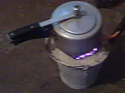 Lighting a Sigri requires a substantial amount of effort. First, the fuel (either coal, cow dung or wood pieces) is loaded through the upper opening. A piece of cow dung (perhaps soaked in kerosene) is then lit and inserted through the hole in the side of the Sigri, below the iron rods. The Sigri is then left in a well-ventilated area until it stops emitting smoke, once up to temperature it will produce a smokeless heat. During this period it is necessary to occasionally stoke and fan the Sigri.