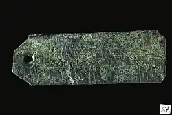 The amulet is a copper plate, 82 mm long, 27.5-29mm wide and 0.9mm thick.[1] It was discovered at a depth of c. 1.2 metres in the 'Granhäcken' block of the medieval city of Sigtuna in March 1931, together with pottery fragments and bone combs. Additional excavations of the site were undertaken later the same year, but did not reveal anything new of interest.[2]