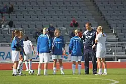 ![]() Sigurður with women's national team players in 2009 | |||