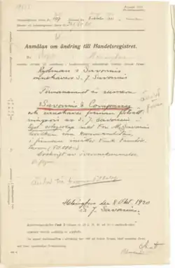 On 8 October 1920 Savonius founded Savonius & Company, with his wife as a shareholder.