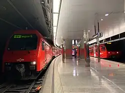 In 1990, the two lines were extended from their previous joint terminus at Zurich Selnau (until then a surface station) to a new terminus below Bahnhofplatz, adjacent to Zürich Hauptbahnhof (Zürich HB), named Zürich HB SZU. This extension involved the construction of a new rail tunnel from Selnau to Zürich HB, and a new underground intermediate station adjacent to the former terminus, Zurich Selnau. The underground platforms used at Zürich HB were already in existence, having been built prior to 1973 for a U-Bahn scheme that was ultimately rejected by voters. Once the new extension had been opened, the former terminus at Selnau was redeveloped and little evidence of it is now visible.[4][5]