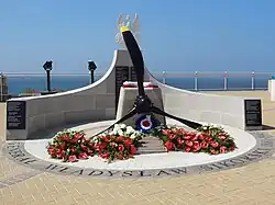 The Sikorski Memorial in Gibraltar commemorates the 1943 Gibraltar B-24 crash of 4 July 1943 which caused the death of General Władysław Sikorski, the commander-in-chief of the Polish Army and Prime Minister of the Polish government in exile. Fifteen other people also died in the crash, with only the pilot Eduard Prchal surviving.[1] The present version of the memorial, unveiled on 4 July 2013, is the third, replacing two earlier memorials erected in 1945 and 2003 near the scene of the crash. It was designed and constructed by a Polish company, using sandstone from Poland brought across Europe to Gibraltar where it now comprises much of the 5 metres (16 ft) wide memorial.