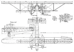 The S-37 was a two bay sesquiplane using parallel interplane struts and bracing wires. Based on the S-35 its construction was very similar, an all metal fuselage and main wing made of Duralumin and covered with fabric.[1] The empennage featured a triple tail with the rudders placed in the slipstream of each engine and a center vertical stabilizer that was adjustable from a lever in the cockpit. The first S-37 was initially powered by 500 horsepower (373 kilowatts) Gnome-Rhône 9A Jupiter engines with the main fuel tanks located in the fairings behind each engine. A small two-cylinder hand-started auxiliary power unit mounted in the fuselage below the cockpit generated compressed air used to start the main engines. Main wheel brakes were hydraulically controlled with differential braking. The nose of the fuselage was hinged and concealed an opening 30 in (76 cm) wide by 48 in (120 cm) tall that could be used for baggage or an auxiliary fuel tank.[2]