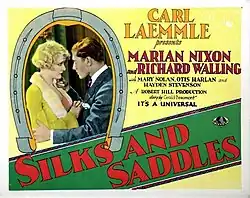 Silks and Saddles is a 1929 American pre-Code drama film directed by Robert F. Hill and written by Edward Clark, James Gruen, Paul Gangelin, Faith Thomas, J.G. Hawks and Albert DeMond. The film stars Richard Walling, Marian Nixon, Sam De Grasse, Montagu Love, Mary Nolan and Otis Harlan. The film was released on January 20, 1929, by Universal Pictures.[1][2][3]