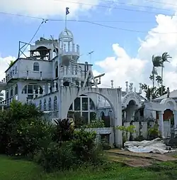 Silkwood Castle is at 18 Margaret Street (17°44′45″S 146°01′26″E / 17.74591°S 146.02375°E). Engineer John Nielsen retired to Silkwood and, in 2009, commenced building himself a home. It was an imposing whitewashed concrete structure, intended to be something different, which has been described variously looking like a "Disney fairytale" and a "mosque". He worked on it for many years until his death.[33][34]