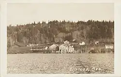 By the 1910s and 1920s, the Christensens seized the opportunity and built a post office, store, and dance hall all using Scandinavian architecture with steep pitched roofs and on stilts over water.[8] By the 1930s they had built five cabins, an outboard motor repair shop, petrol station, and a school. Christensen expanded his barge business by ferrying passengers and supplies throughout the lake to historic Darling's resort, the Roosevelt Hotel, Booth Lumber mill, Ada, or his retreat that included, "floating whorehouses in front of his store".[12][7] A 1955, article from the Siuslaw News, explained how the men's operation functioned,