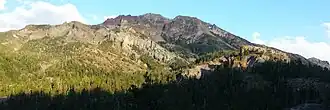 Silver Peak is located in the Sierra Nevada mountain range, 3.2 miles northeast of Ebbetts Pass in the Carson-Iceberg Wilderness, on land managed by Humboldt–Toiyabe National Forest. The nearest town is Markleeville 8.5 mile (13.7 km) to the north and the nearest higher neighbor is Highland Peak 1.63 mile (2.6 km) to the south.[4] Precipitation runoff from this mountain drains into tributaries of the East Fork Carson River. Topographic relief is significant as the summit rises 3,400 feet (1,000 meters) above Noble Canyon in 1.6 mile (2.6 km). The mountain's toponym has been officially adopted by the United States Board on Geographic Names.[3]