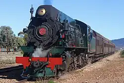 All four arrived at Port Pirie in October 1951 and, after final assembly, moved to Broken Hill in a convoy, with two in steam. Until 1953, all were hired to the South Australian Railways on a rotating basis, operating services out of Peterborough, until the South Australian Railways 400 class locomotives were delivered.[2][3]