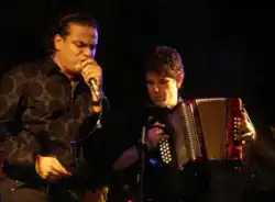 Silvestre Dangond Vives Delano [1][2](born May 12, 1980, in Urumita) is a Colombian singer. He attributes his talents to his father, the singer William José "El Palomo" Dangond Baquero, who during the mid-1970s recorded 10 singles with Andrés "El Turco" Gil; and his mother, who comes from a musical family and passed down her charismatic nature to him, while also playing a major role in his formal and personal education.
