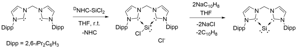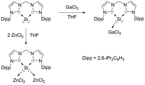 - ^ a b c d Takagi, Nozomi; Shimizu, Takayasu; Frenking, Gernot (2009-03-23). "Divalent Silicon(0) Compounds". Chemistry - A European Journal. 15 (14): 3448–3456. doi:10.1002/chem.200802739. ISSN 0947-6539. PMID 19229927.