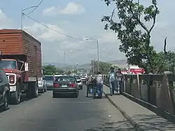 The Simón Bolívar International Bridge (Spanish: Puente Internacional Simón Bolívar) is a 300-metre-long (980 ft) bridge across the Táchira River on the Venezuela–Colombia border, connecting the city of San Antonio del Tachira in Venezuela with the small town of La Parada in Colombia.[1] The first major city in Colombia after the border is Cúcuta.[2]
