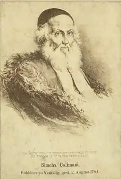 Simchah (Simon) ben Abraham Calimani (1699 – August 2, 1784) was a Venetian rabbi and author. He was a versatile writer, and equally prominent as linguist, poet, orator, and Talmudist. During his rabbinate Calimani was engaged as corrector at the Hebrew printing office in Venice. Among the great number of books revised by him was the responsum of David ben Zimra (RaDBaZ), to which he added an index, and the Yad Ḥaruẓim (on Hebrew versification) of Gerson Ḥefeẓ, enriched with interesting notes of his own.