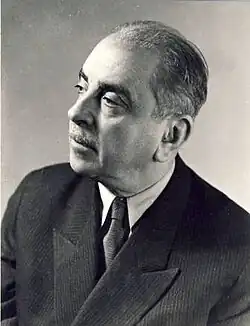Stoilow was elected corresponding member of the Romanian Academy in 1936, and full member in 1945, and later became president of the Physics and Mathematics section of the Academy.[1] In 1949 he was the founding director of the Institute of Mathematics of the Romanian Academy, serving in that capacity until he died. Among his students at the University of Bucharest and at the Institute were Cabiria Andreian Cazacu, Romulus Cristescu, Martin Jurchescu, Ionel Bucur, and Aristide Deleanu,[2] as well as Nicolae Boboc, Corneliu Constantinescu, and Aurel Cornea. Some of the first Romanian topologists who obtained their candidate’s theses were Stoilow’s students Tudor Ganea, Israel Berstein, Aristide Deleanu, Valentin Poénaru, and Kostake Teleman.[5]