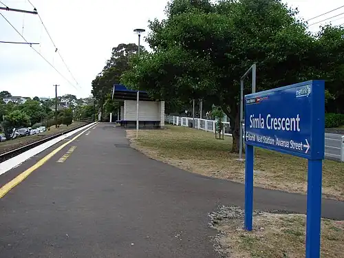 Simla Crescent railway station is one of eight stations on the Johnsonville Branch, a branch railway north of Wellington in New Zealand’s North Island, and is one of two stations that were added to the line when it was upgraded prior to being reopened as the Johnsonville Branch. It serves the suburbs of Ngaio and Khandallah.