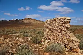 Simmonston was a former town in South Australia which was abandoned before completion in the early 1880s. The town was originally intended to be on the new railway extending north from Quorn, but the final route passed through Gordon instead. Today, the stone ruins of a hotel and its cellars are still visible. The town is reported as being "named after Sir Lintorn Simmons, Field Marshal and Commandant of the Royal Engineers" by William Jervois, the 10th Governor of South Australia.[3] The creation of the town was announced in April 1880 as follows: "Portions of Crown Lands in the Hundred of Kanyaka have been reserved as a site for the new town of Simmonston."[4] Plans to build the hotel were announced three weeks later in May 1880 by a D. McFie.[5] The site of the former town is currently located in the gazetted locality of Kanyaka and within the local government area of the Flinders Ranges Council.[1]