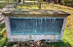 Bradstreet was buried in the Charter Street Burying Ground in Salem.[55] Poetry by his first wife Anne was published in England in 1650, including verses containing expressions of enduring love for her husband.[56] Anne Bradstreet died in 1672; the couple had eight children, of whom seven survived infancy. Their children included Dudley and John.[57] In 1676 Bradstreet married Ann Gardner, the widow of Captain Joseph Gardner, son of Thomas Gardner of Salem.[55]