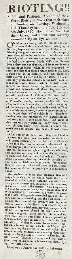 - ^ a b "Broadside entitled 'Rioting!!'". The word on the street. National Library of Scotland: National Library of Scotland. 1830. p. F.3.a.13(18). Retrieved 31 January 2014.