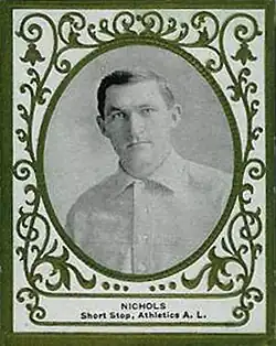 Simon Burdette Nicholls (July 18, 1882 – March 12, 1911) was an American professional baseball shortstop. He played in Major League Baseball (MLB) for the Detroit Tigers, Philadelphia Athletics, and Cleveland Naps. A native of Boyds, Maryland, he attended the Maryland Agricultural College. He was signed as an emergency replacement by the Tigers during a road trip to Washington in 1903 and played both games of a doubleheader for the Tigers. He was a member of the Philadelphia Athletics from 1906 to 1909, and was the team's primary shortstop in 1907 and 1908. He appeared for the Cleveland Naps in only three games at the beginning of the 1910 season. He spent most of that season with the minor-league Baltimore Orioles and was named the team's captain. He died of complications from typhoid fever in Baltimore before the beginning of the 1911 season.