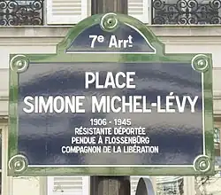Simone Michel-Lévy (19 January 1906 – 13 April 1945) was a French Resistance worker. She had several pseudonyms – Emma, Françoise, Madame Royale, Mademoiselle Flaubert or Madame Bertrand - and is one of 6 female compagnons de la Libération (decreed on 26 September 1945).