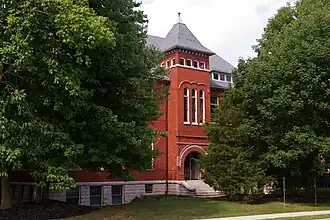 This complex consists of a Romanesque Revival-style building that was built in 1892, and two Late Gothic Revival-style buildings that were added during the 1920s. The 1892 building is square in plan, two-and-one-half-story structure with a raised basement. It was built using pressed brick and features three ornate projecting entrances. The addition was built in two phases, in 1926 and 1929. It is a two-story structure that was built using yellow brick with brownstone trim. It was used as a high school until 1957, then as a junior high until 1981, when it was sold by the school district.[2]