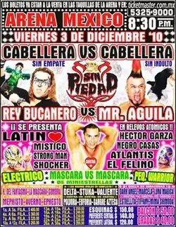- ^ a b c d e f g h i j k l Ruiz Glez, Alex (December 3, 2010). "CMLL "Sin Piedad 2010" (cobertura y resultados 3 de diciembre del 2010) Eléctrico gana la máscara de Pequeño Warrior - Rey Bucanero gana la cabellera de Mr. Águila" (in Spanish). Super Luchas Magazine. Retrieved January 31, 2011.