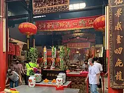 The information board at the front entrance says the temple site was founded in 1864 by Kapitan Yap Ah Loy, dedicated to patron deities of Sin Sze Ya and Si Sze Ya.[1] The deities has guided Yap to defeat the enemies and defend the town of Kuala Lumpur during the civil war from 1870 to 1873,[1] with the two patron deities are actually based on two real persons of Sheng Meng Li (Kapitan of Sungai Ujong) and Chung Lai, a loyal lieutenant of Yap.[4] The temple structures was finally built in 1883.[2]
