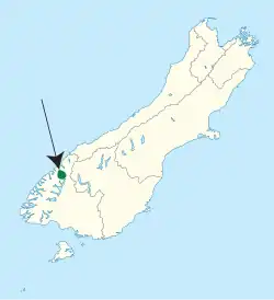 Distribution of the Sinbad skink on a map of the South Island