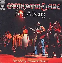 "Sing a Song" is a song recorded by R&B/funk band, Earth, Wind & Fire, which was issued as a single in November 1975 on Columbia Records.[1] The song reached No. 1 on the Billboard Hot Soul Singles chart and No. 5 on the Billboard Hot 100.[2][3]