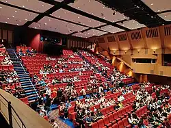 While the original auditorium was not designed for theatrical performances, the loudspeakers were specially positioned so its acoustics were on par with other halls.[6] The current acoustic system is by Meyer Sounds, addressing previous complaints about reverberation and deteriorating sound quality for seats at the back of the hall.[22]
