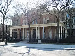 A particular influence on the concepts of the one-kitchen house was Hull House in Chicago, opened in 1889 by Jane Addams (1860–1935) and Ellen Gates Starr (1859–1940), who co-founded the American settlement movement.[18] Hull House was one of the first community practice facilities and was located in the middle of an immigrant neighborhood. From here, both direct help and cultural education were offered to the immigrants and refugees living in the neighborhood. At the same time, it was a research center for social issues, on the basis of which women in particular demanded socio-political reforms. In addition to social and community work, the house served as accommodation for both female workers and professional intellectuals, mostly immigrant women. With the aim of improving the living conditions of the women, a central kitchen was set up, from which the approximately 50 residents as well as people from the neighborhood were supplied. The women had the choice of ordering food to their homes or eating it in the communal dining room. This was both a meeting place and the starting point for a wide range of cultural and political activities.