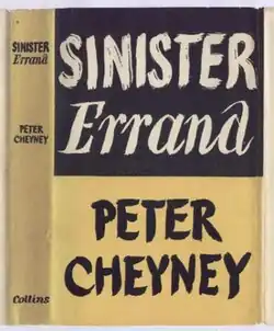 Sinister Errand is a 1945 spy thriller novel by the British writer Peter Cheyney.[1] Cheyney known for his creations Lemmy Caution and Slim Callaghan, introduced a new character the half-American secret agent Michael Kells.[2] It was followed by a sequel Ladies Won't Wait in 1951.