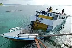 ![]() MV Acita 03 being evacuated by locals after it had capsized off Baubau | |